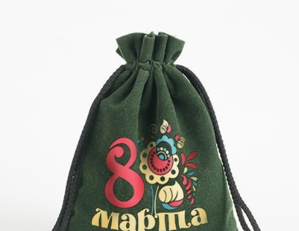 8 марта является очень важным праздником. Мы позаботились о женщинах, и создали специальную упаковку для этого праздника. Вся упаковка выполнена виде подарочных мешочков с разными принтами, разного цвета и размера. Подарить на 8 марта можно разнообразные украшения, сувениры, духи, конфеты и многие другие подарки. Благодаря оригинальной и интересной упаковке подарок станет ещё лучше. Для изготовления мешочков мы можем использовать разную ткань с разным дизайном. На изготовление мешочков у нас уйдет от 10 дней, на них можно нанести как одноцветный логотип, так и полноцветную печать многими доступными способами.