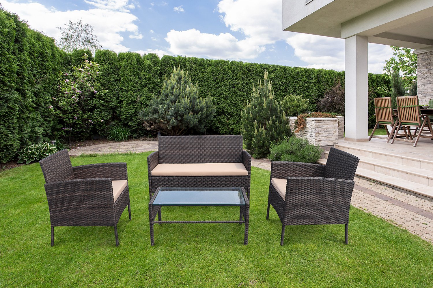 Набор HOFF Country состоит из небольшого столика, двух одноместных кресел и одного небольшого диванчика. Такой набор отлично подойдет для обустройства пространства для отдыха на летний период, чтобы отдыхать на природе с комфортом и красотой (однако такой набор нельзя оставлять на зиму – температурный режим в пределах от 0 до +40 градусов).