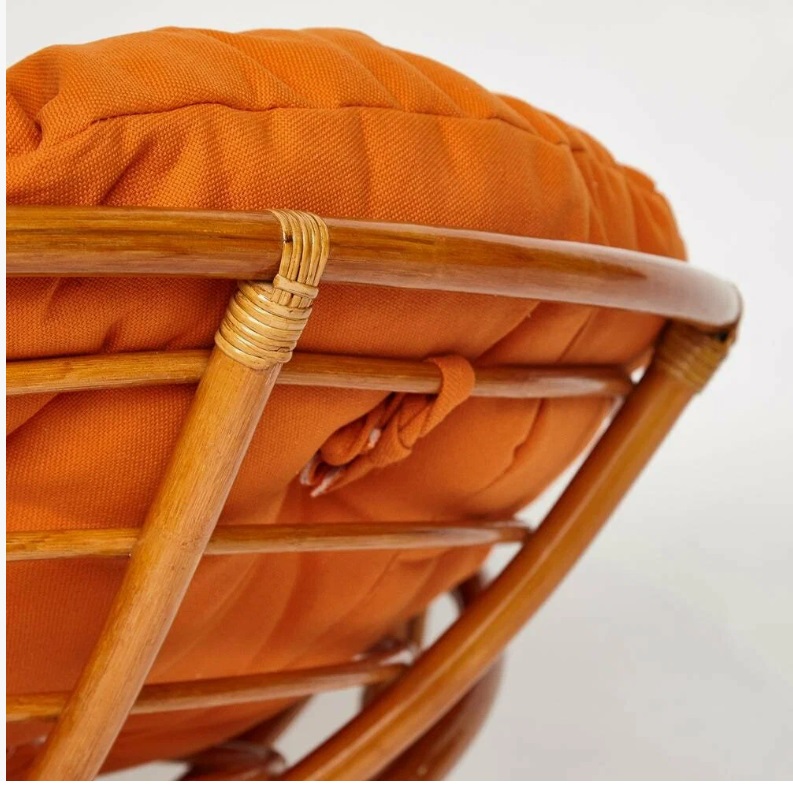 У него очень интересный дизайн. Подойдёт оно как для загородного дома, так и для квартиры. Кроме того, кресло можно использовать в офисе и любых других заведениях. Это вариант для тех, кто любит натуральную мебель. Но, для такого кресла нужна специальная подушка. Без подушки использование кресла становится невозможным. Связано это с тем, что ротанг довольно твёрдый, и кресла жесткое. Если же вы приобретете специальную подушку, вы сделаете свое времяпровождение более комфортным.