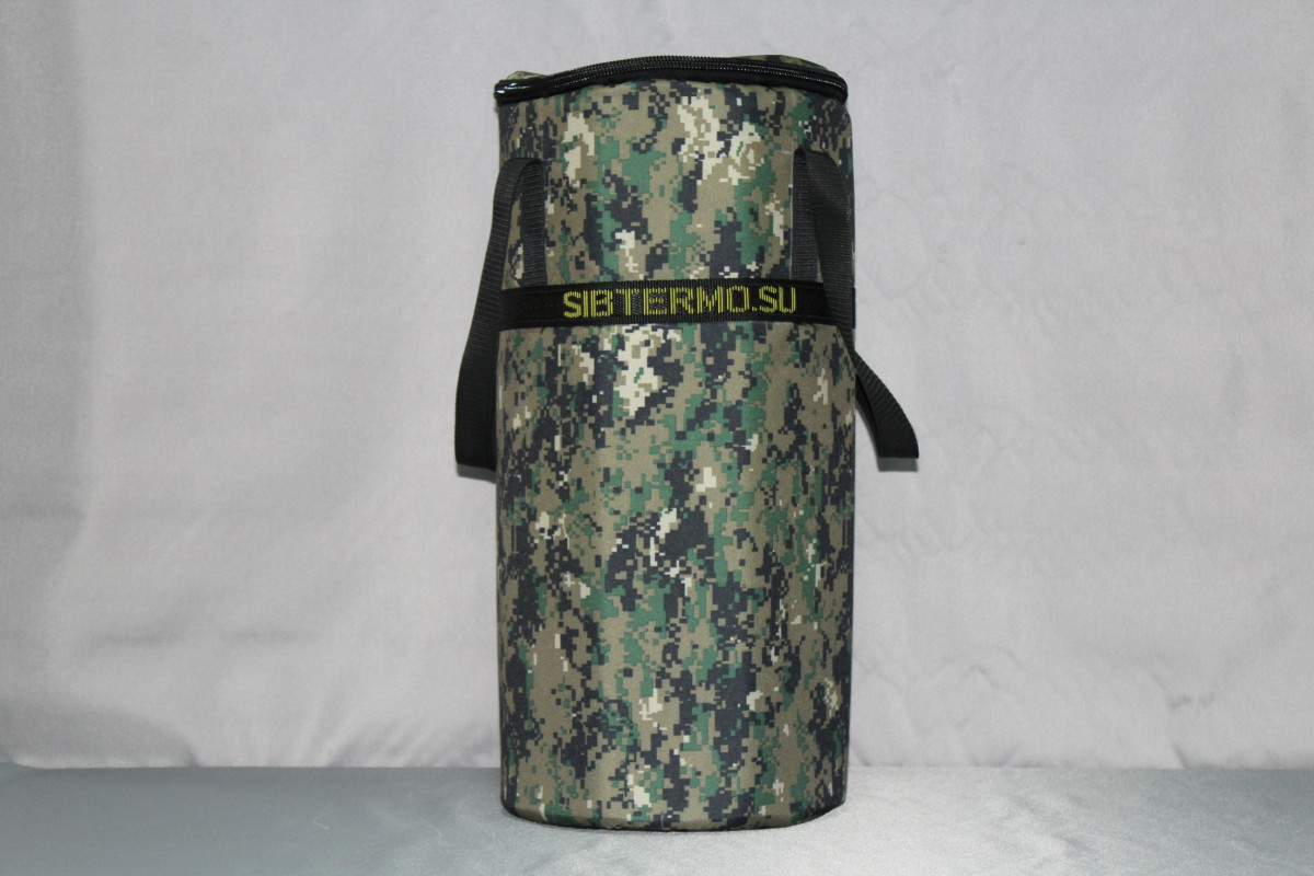 Сумка для 27л. газового баллона выполнена из нескольких слоев прочной ткани Oxford 600D. Поверхность материала покрывается слоем поливинилхлорида и полиуретана. В качестве утеплителя используется фольгированный пенофол толщиной 10 мм.