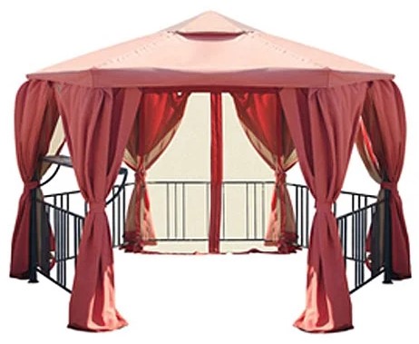 Хотим предложить вам приобрести тент-шатёр ГЕКСАГОН-II, имеющий бордовый цвет. Размеры такого шатра составляют 350 х 270 см, изготовлен он из водоотталкивающего полиэстера, имеющего плотность 220 г. Также в комплекте с данным шатром находится москитная сетка, которая сможет защитить вас от насекомых. Вес изделия составляет 7 кг.
