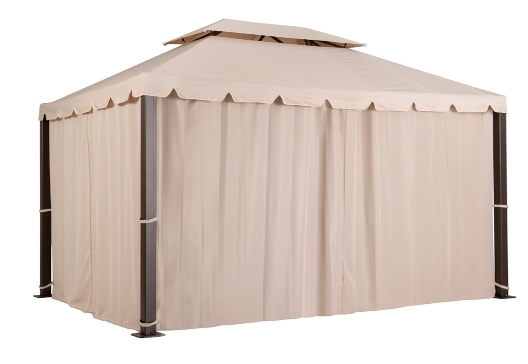 Данный комплект хорошо подойдёт и для проведения небольших торжеств и для повседневного использования. Крыша и шторы способны защитить от солнца и ветра. Крыша, благодаря вентиляционному клапану, хорошо проветривает шатёр.