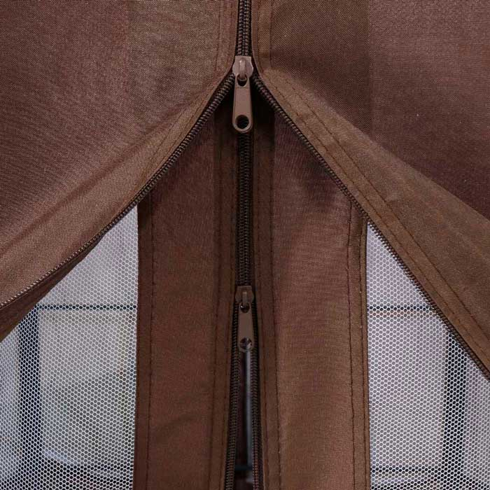 Хотим предложить вам приобрести такое изделие, как комплект для шестиугольного шатра. Данный комплект выполнен в коричневом цвете. В нём находится крыша-тент с клапаном для проветривания, плотные шторы, а также москитная сетка, которая защищает от насекомых. Это наилучший вариант в том случае, если вы хотите сделать свой отдых более комфортным. Комплект защитит вас от солнечных лучей, ветра, дождя, насекомых. Подойдёт комплект для размеров шатра 1,75 х 1,75 х 2,75 м. Крыша изготовлена из полиэстера с плотностью 160 г, а боковые стенки из полиэстера плотностью 140 г с сеткой.