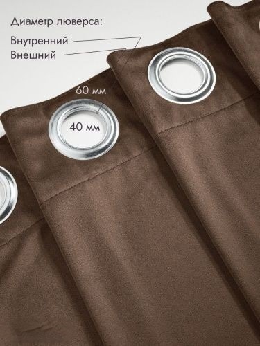 Штора для примерочной и дома на люверсах бархатная цвет коричневый, 1 шт