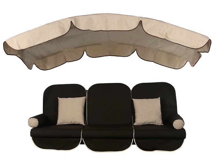 Это сменный комплект подушек, предназначенных для садовых качелей, предназначены такие подушки для качелей с длиной сидения 170 см, размер крыши составляет 200 на 118 см. В комплекте находится матрас, тент, а также подушки. Кроме того, в комплект может входить и вуаль, она добавляется дополнительно. Матрас, а также крыша в данном комплекте изготовлены из инновационной ткани, которая совершенно не выгорает на солнце, не плесневеет, а также способна защитить от ультрафиолетовых лучей. В качестве наполнителя используется поролон, матрас находится на молнии. При необходимости наполнитель вытаскивается, а чехол стирается. Толщина данного матраса составляет 10 см.